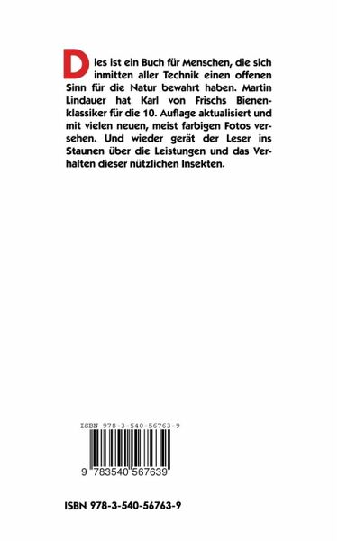 Karl von Frischs Bienenforschungen sind Legende: Kaum ein Schüler, der im Biologieunterricht nichts von der Orientierung und den Schwänzeltänzen der Bienen gehört hätte. Fast 70 Jahre nach Erscheinen der ersten Auflage von Aus dem Leben der Bienen hat Martin Lindauer, einst enger Mitarbeiter v. Frischs und selbst ein bekannter Bienenforscher, diesen Klassiker der Bienenliteratur aktualisiert und mit neuen, oft farbigen Photos versehen. Dabei ist es ihm gelungen, den unvergleichlichen Stil v. Frischs zu bewahren. Ein Buch für alle, die sich inmitten aller Technik noch einen offenen Sinn für die Natur bewahrt haben.