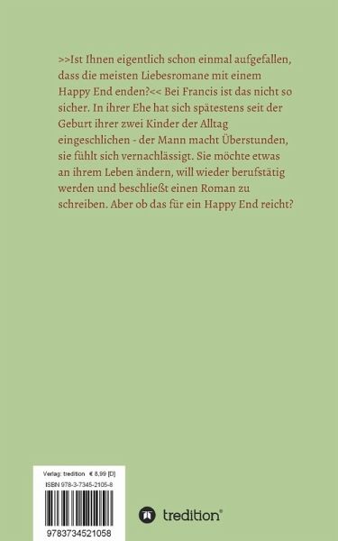 Ist Ihnen eigentlich schon einmal aufgefallen, dass die meisten Liebesromane mit einem Happy End enden? Bei Francis ist das nicht so sicher. In ihrer Ehe hat sich spätestens seit der Geburt ihrer zwei Kinder der Alltag eingeschlichen - der Mann macht Überstunden, sie fühlt sich vernachlässigt. Sie möchte etwas an ihrem Leben ändern, will wieder berufstätig werden und beschließt, einen Roman zu schreiben. Aber ob das für ein Happy End reicht?