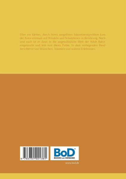 Über ein kleines, durch Stress ausgelöstes Inkontinenzproblem kam der Autor erstmals mit Windeln und Schutzhosen in Berührung. Nach und nach ist er dann in die ungewöhnliche Welt der Adult Babys eingetaucht und lebt nun dieses Faible. In dem vorliegenden Band berichtet er von Wünschen, Träumen und wahren Erlebnissen.