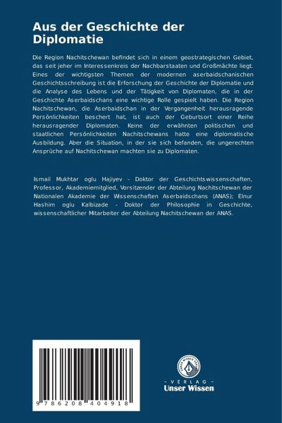 Die Region Nachitschewan befindet sich in einem geostrategischen Gebiet, das seit jeher im Interessenkreis der Nachbarstaaten und Großmächte liegt. Eines der wichtigsten Themen der modernen aserbaidschanischen Geschichtsschreibung ist die Erforschung der Geschichte der Diplomatie und die Analyse des Lebens und der Tätigkeit von Diplomaten, die in der Geschichte Aserbaidschans eine wichtige Rolle gespielt haben. Die Region Nachitschewan, die Aserbaidschan in der Vergangenheit herausragende Persönlichkeiten beschert hat, ist auch der Geburtsort einer Reihe herausragender Diplomaten. Keine der erwähnten politischen und staatlichen Persönlichkeiten Nachitschewans hatte eine diplomatische Ausbildung. Aber die Situation, in der sie sich befanden, die ungerechten Ansprüche auf Nachitschewan machten sie zu Diplomaten.