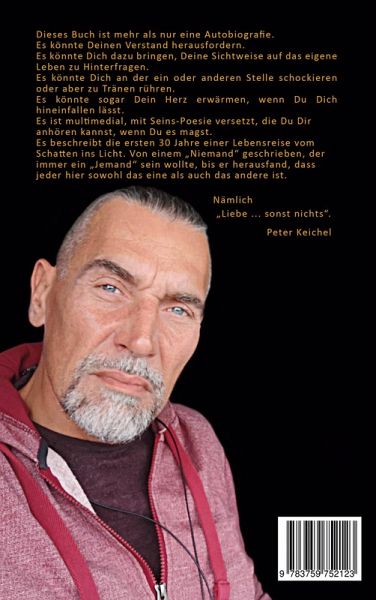 Erster Teil meiner Autobiografie: Ein Leben voller Wandel Dieses Buch erzählt die Geschichte meines wechselhaften Lebens, geschrieben aus Liebe zu mir selbst - trotz einer Vergangenheit geprägt von Sucht und Elend. Aus Angst und Verzweiflung wuchs Mut, der mich dazu brachte, meine Erfahrungen zu teilen. Ich möchte zeigen, dass alles möglich ist. Ein multimediales Erlebnis: Das Buch ist mit Audiodateien verknüpft, die eigens verfasste Gedichte enthalten. Diese Seins-Poesie spricht mit unglaublicher Klarheit über das Leben. Herausfordernd und berührend: Dieses Buch fordert deinen Verstand heraus und lädt dich ein, mit dem Herzen zu sehen. Es könnte dich erschrecken, sogar anekeln, und dich zum Kopfschütteln bringen. Doch es wird dich auch zu Tränen rühren und dein Herz erwärmen, wenn du die Liebe erkennst, die darin steckt. Ein Blick in den Spiegel: Es ist ein knallharter Rückblick auf den, der ich einst war, und zeigt gleichzeitig, wer ich jetzt bin. Ein Buch, das inspiriert und motiviert, die eigenen Herausforderungen zu meistern. Entdecke eine Geschichte voller Tiefe und Ehrlichkeit - ein Zeugnis dafür, dass wirklich alles möglich ist.