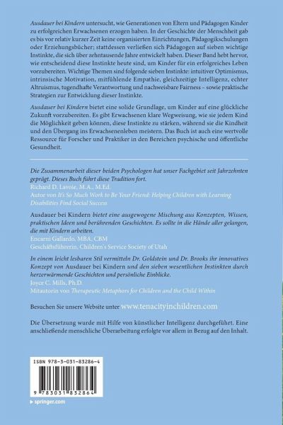 Ausdauer bei Kindern bietet eine solide Grundlage, um Kinder auf eine glückliche Zukunft vorzubereiten. Es gibt Erwachsenen klare Wegweisung, wie sie jedem Kind die Möglichkeit geben können, diese Instinkte zu stärken, während sie die Kindheit und den Übergang ins Erwachsenenleben meistern. Das Buch ist auch eine wertvolle Ressource für Forscher und Praktiker in den Bereichen psychische und öffentliche Gesundheit.