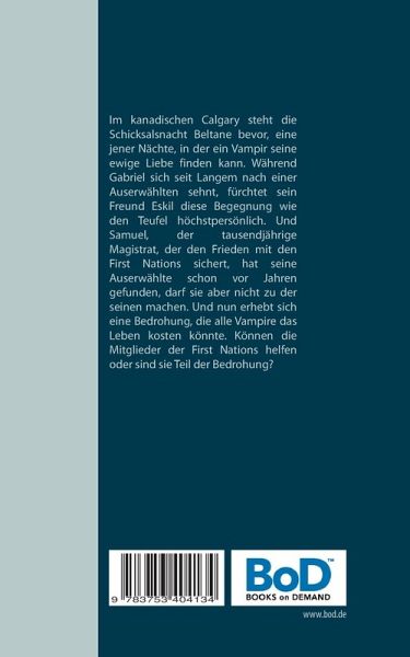 Im kanadischen Calgary steht die Schicksalsnacht Beltane bevor, eine jener Nächte, in der ein Vampir seine ewige Liebe finden kann. Während Gabriel sich seit Langem nach einer Auserwählten sehnt, fürchtet sein Freund Eskil diese Begegnung wie den Teufel höchstpersönlich. Und Samuel, der tausendjährige Magistrat, der den Frieden mit den First Nations sichert, hat seine Auserwählte schon vor Jahren gefunden, darf sie aber nicht zu der seinen machen. Und nun erhebt sich eine Bedrohung, die alle Vampire das Leben kosten könnte. Können die Mitglieder der First Nations helfen oder sind sie Teil der Bedrohung?