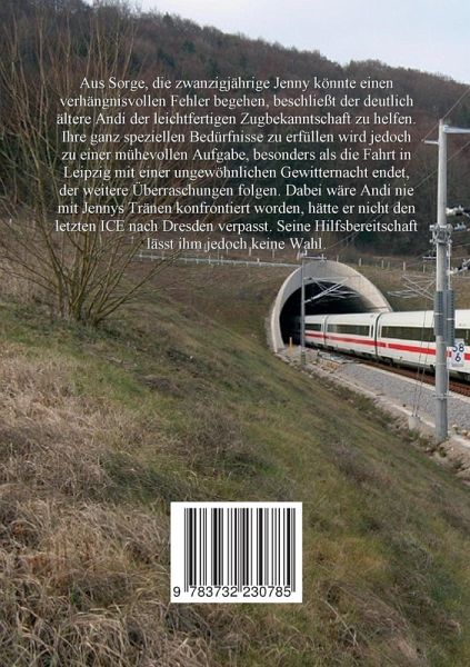 Aus Sorge, die zwanzigjährige Jenny könnte einen verhängnisvollen Fehler begehen, beschließt der deutlich ältere Andi der leichtfertigen Zugbekanntschaft zu helfen. Ihre ganz speziellen Bedürfnisse zu erfüllen wird jedoch zu einer mühevolle Aufgabe, besonders als die Fahrt in Leipzig mit einer ungewöhnlichen Gewitternacht endet, der weitere Überraschungen folgen. Dabei wäre Andi nie mit Jennys Tränen konfrontiert worden, hätte er nicht den letzten ICE nach Dresden verpasst. Seine Hilfsbereitschaft lässt ihm jedoch keine Wahl.