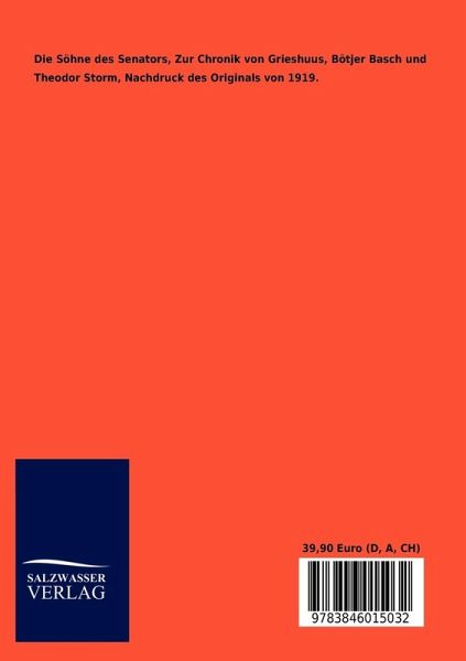 Die Söhne des Senators, Zur Chronik von Grieshuus, Bötjer Basch und Theodor Storm, Nachdruck des Originals von 1919.