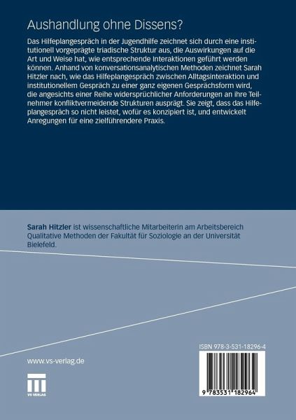 Das Hilfeplangespräch in der Jugendhilfe zeichnet sich durch eine institutionell vorgeprägte triadische Struktur aus, die Auswirkungen auf die Art und Weise hat, wie entsprechende Interaktionen geführt werden können. Anhand von konversationsanalytischen Methoden zeichnet Sarah Hitzler nach, wie das Hilfeplangespräch zwischen Alltagsinteraktion und institutionellem Gespräch zu einer ganz eigenen Gesprächsform wird, die angesichts einer Reihe widersprüchlicher Anforderungen an ihre Teilnehmer konfliktvermeidende Strukturen ausprägt. Sie zeigt, dass das Hilfeplangespräch so nicht leistet, wofür es konzipiert ist, und entwickelt Anregungen für eine zielführendere Praxis.
