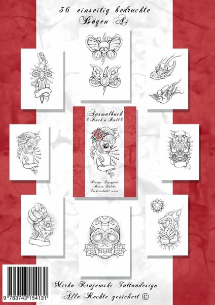 Ein schönes Ausmalbuch für Erwachsene in Richtung Tattoostil, speziell geignet für alle die Tätowierungen und alles was damit zu tun hat mögen,hier in Band 4 mit dem Thema "Rock-n-Roll",darunter lustige Zuckerschädel,Gipsygirls,Schwalben etc. ...