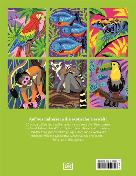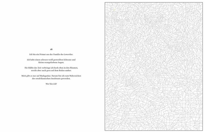 - Baumfrosch, Faultier oder Totenkopfäffchen: Feld für Feld entstehen 30 detailreiche Ausmalbilder - mit kleinen Rätseln zum Erraten der Motive