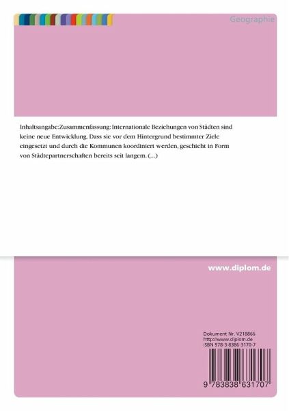 In der Arbeit werden die stadtaußenpolitischen Strategien der Städte Glasgow, Köln und Wien anhand verschiedener Themenkomplexe analysiert und aus den Erkenntnissen ein stadtaußenpolitisches Handlungskonzept für die Stadt Köln entwickelt.