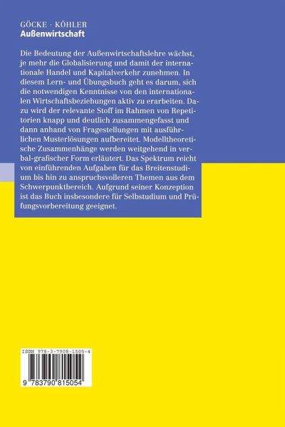 Die Bedeutung der Außenwirtschaftslehre wächst, je mehr die Globalisierung und damit der internationale Handel und Kapitalverkehr zunehmen. In diesem Lern- und Übungsbuch geht es darum, sich die notwendigen Kenntnisse von den internationalen Wirtschaftsbeziehungen aktiv zu erarbeiten. Dazu wird der relevante Stoff im Rahmen von Repetitorien knapp und deutlich zusammengefasst und dann anhand von Fragestellungen mit ausführlichen Musterlösungen aufbereitet. Modelltheoretische Zusammenhänge werden weitgehend in verbal-grafischer Form erläutert. Das Spektrum reicht von einführenden Aufgaben für das Breitenstudium bis hin zu anspruchsvolleren Themen aus dem Schwerpunktbereich. Aufgrund seiner Konzeption ist das Buch insbesondere für Selbstudium und Prüfungsvorbereitung geeignet.