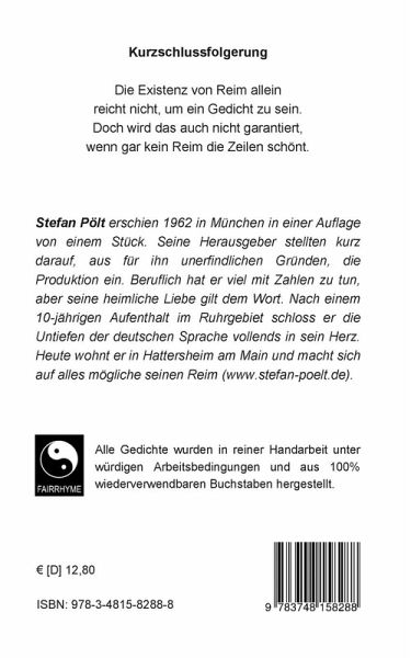 'Außer Späßen nichts gewesen' ist nach 'Das große Reimemachen' der zweite Band mit humorvollen Gedichten von Stefan Pölt. Darin führt er den Leser in gewagten Wortspielen und teils aberwitzigen Reimen durch ein Panoptikum komischer Szenerien, wie die ersten Jagdversuche des Häuptlingssohns 'Kleiner Feigling', das Treffen der Selbsthilfegruppe 'Humorlose Dichter von lustigen Werken' und eine nächtliche Protestaktion gegen Massenbierhaltung.Inspiriert durch die großen Vertreter der komischen Lyrik von Heinz Erhardt bis Robert Gernhardt präsentiert der 'Hofnarr der Poesie' haarsträubende Dialoge, stimmt ein Loblied auf die Mülltonne an und sinniert darüber, warum der König der Wüste sein Fastfoodleben satthat.