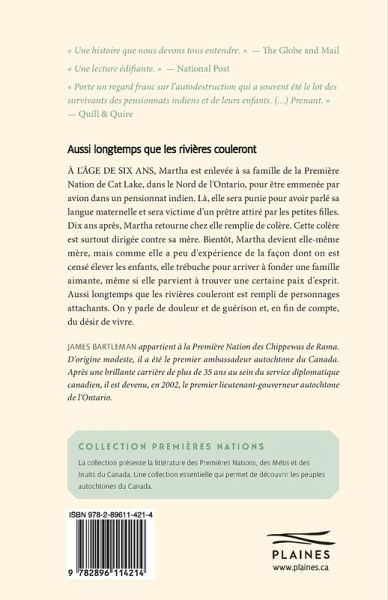 À L'ÂGE DE SIX ANS, Martha est enlevée à sa famille de la Première Nation de Cat Lake, dans le Nord de l'Ontario, pour être emmenée par avion dans un pensionnat indien. Là, elle sera punie pour avoir parlé sa langue maternelle et sera victime d'un prêtre attiré par les petites filles. Dix ans après, Martha retourne chez elle remplie de colère. Cette colère est surtout dirigée contre sa mère. Bientôt, Martha devient elle-même mère, mais comme elle a peu d'expérience de la façon dont on est censé élever les enfants, elle trébuche pour arriver à fonder une famille aimante, même si elle parvient à trouver une certaine paix d'esprit. Aussi longtemps que les rivières couleront est rempli de personnages attachants. On y parle de douleur et de guérison et, en fin de compte, du désir de vivre.
