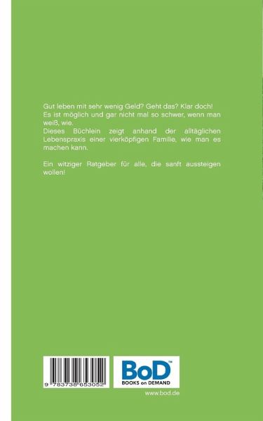 Gut leben mit sehr wenig Geld? Geht das? Klar doch!Es ist möglich und gar nicht mal so schwer, wenn man weiß, wie. Dieses Büchlein zeigt anhand der alltäglichen Lebenspraxis einer vierköpfigen Familie, wie man es machen kann.Ein witziger Ratgeber für alle, die sanft aussteigen wollen!Ein Buch für...Faulpelze und Philosophen. ...für Menschen, die weniger arbeiten und mehr spielen wollen....für Ungeduldige, die ihren Ruhestand nicht erwarten können....für Querdenker, die sich nicht unterordnen wollen. ...für Leute, die nicht viel vom Geldverdienen halten. ...für jeden, der mit wenig, sehr wenig Knete, gut leben möchte. ...für alle, die ein Höchstmaß an individueller Freiheit wollen, ohne auf einen beqeumen Lebensstil zu verzichten.