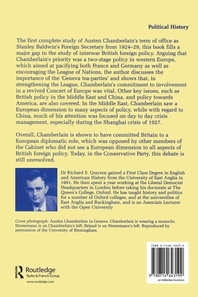 This book fills a major gap in the study of inter-war British foreign policy: it is the first complete study of Austen Chamberlain's term of office as Stanley Baldwin's Foreign Secretary from 1924-29.