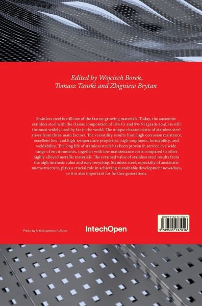 Stainless steel is still one of the fastest growing materials. Today, the austenitic stainless steel with the classic composition of 18% Cr and 8% Ni (grade 304L) is still the most widely used by far in the world. The unique characteristic of stainless steel arises from three main factors. The versatility results from high corrosion resistance, excellent low- and high-temperature properties, high toughness, formability, and weldability. The long life of stainless steels has been proven in service in a wide range of environments, together with low maintenance costs compared to other highly alloyed metallic materials. The retained value of stainless steel results from the high intrinsic value and easy recycling. Stainless steel, especially of austenitic microstructure, plays a crucial role in achieving sustainable development nowadays, so it is also important for further generations.