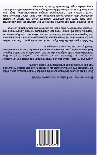 Einfach mal weg - am Besten so weit weg wie möglich. Zwar hat es einige Anläufe gebraucht, bis sich der Protagonist dazu entscheidet, ein Auslandssemester in Australien zu verbringen. Wie sich jedoch herausstellt, war dies eine der besten Entscheidungen seines Lebens!Beginnend mit den Planungen und Vorbereitungen beschreibt der Ich-Erzähler die Sorgen und Gedanken, die vor einem solch großen Schritt im Kopf herumschwirren. Erste Aufgaben, die auf der Reise oder in den ersten Tagen in Australien anstehen, werden - nicht ohne es mit einer Portion Humor zu nehmen - bewältigt und das Semester kann beginnen.Die Erfahrungen, die die Hauptfigur macht, sind umfangreich. Sie beschreiben das Zusammenleben mit Menschen aus vielen unterschiedlichen Ecken der Welt, das Organisationstalent der Universität und vor allem auch die Eigenheiten der Australier. Stets mit einem Hang zur Übertreibung werden Geschehnisse und Personen beschrieben, ohne dabei die Wahrheit aus den Augen zu verlieren.In der zweiten Hälfte des Buches macht sich der Erzähler auf eine vierwöchige Reise quer durch den gesamten Kontinent. Auch hier erfährt er weitere Eigenheiten des Landes, seiner Einwohner aber auch seiner Touristen. Trips durchs Outback und Nationalparks bringen (un)interessante Dinge zum Vorschein, Freundschaften entstehen auf langen, beschwerlichen Busfahrten und immer wieder sorgen Mitreisende für ein Schmunzeln.