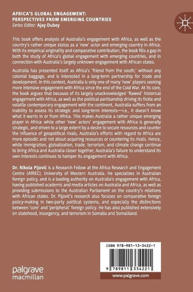This book offers analysis of Australia's engagement with Africa, as well as the country's rather unique status as a 'new' actor and emerging country in Africa. With its empirical originality and comparative contribution, the book fills a gap in both the study of Africa's global engagement with emerging countries, and in connection with Australia's largely unknown engagement with African states.