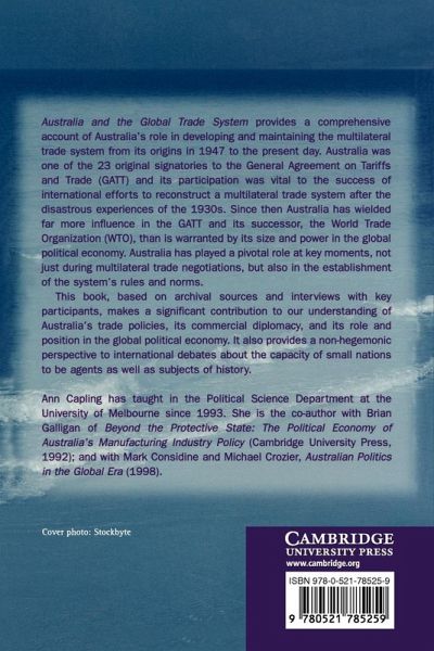 Australia and the Global Trade System provides a comprehensive account of Australia's role in developing and maintaining the multilateral trade system from its origins in 1947 to the present day. Australia was one of the 23 original signatories to the General Agreement on Tariffs and Trade (GATT), and its participation was vital to the success of international efforts to reconstruct a multilateral trade system after the disastrous experiences of the 1930s. Since then, Australia has wielded far more influence in the GATT, and its successor, the World Trade Organization (WTO). This 2001 book, based on archival sources and oral interviews, makes a significant contribution to our understanding of Australia's trade policies, its commercial diplomacy, and its role and position in the global political economy. It provides a perspective on debates about the capacity of small nations to be agents as well as subjects of history.