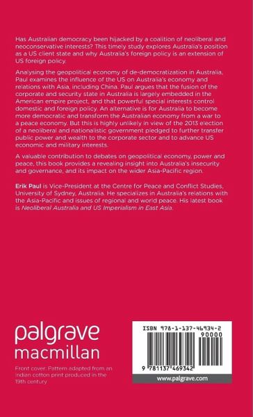 This book explores Australia's role as a US client state and the subsequent consequences for Australian democracy. Examining whether neoliberal and neoconservative interests have hijacked democracy in Australia, Paul questions whether further de-democratisation will advance US economic and military interests.
