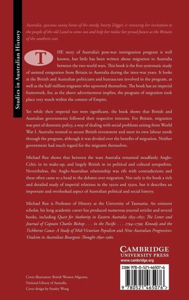 The story of Australia's post-war immigration program is well known, but little has been written about migration to Australia between the wars. This book is the first systematic study of assisted emigration from Britain to Australia during the inter-war years. It looks at the British and Australian politicians and bureaucrats involved in the program and the half-million migrants who uprooted themselves. While their imperial ties were significant, the book shows that British and Australian governments acted in their own interests, using migration to meet their different needs, with little regard for the migrants themselves. Michael Roe shows that the Anglo-Australian relationship was rife with contradictions and these often came to a head in the debates over migration. Not only is the book an important study of imperial relations in the 1920s and 1930s, it describes an important and overlooked aspect of Australian political and social history.