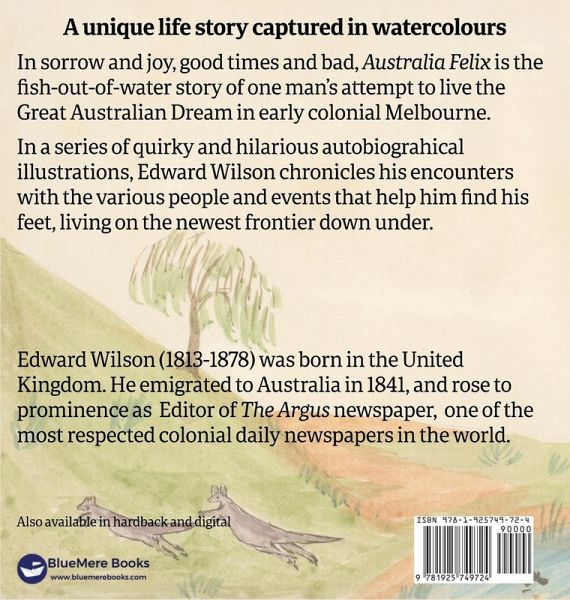 A unique life story captured in watercolours In sorrow and joy, good times and bad, Australia Felix is the fish-out-of-water story of one London man's attempt to live the Great Australian Dream in early colonial Melbourne. In a a series of quirky and hilarious autobiograhical illustrations, Edward Wilson chronicles his encounters with various people and events that help him find his feet, living on the newest frontier down under.