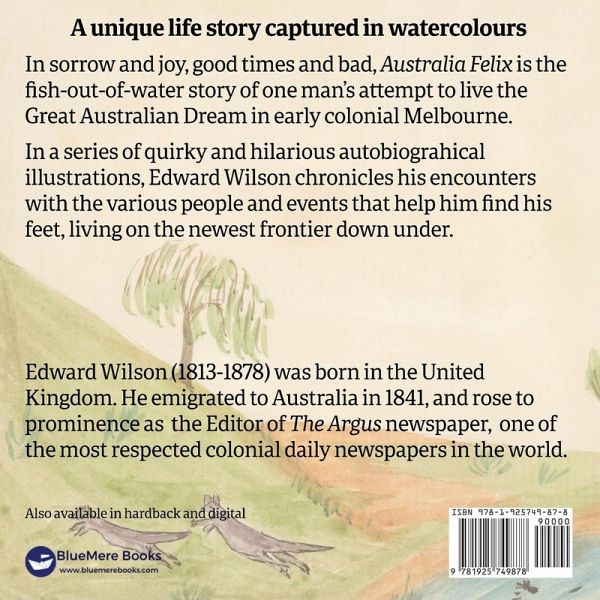 A unique life story captured in watercolours In sorrow and joy, good times and bad, Australia Felix is the fish-out-of-water story of one London man's attempt to live the Great Australian Dream in early colonial Melbourne. In a a series of quirky and hilarious autobiograhical illustrations, Edward Wilson chronicles his encounters with various people and events that help him find his feet, living on the newest frontier down under.