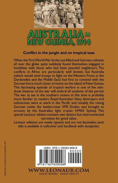 Conflict in the jungle and on tropical seas When the First World War broke out Allied and German colonies all over the globe quite suddenly found themselves engaged in hostilities with those who had been peaceful neighbours. The conflicts in Africa are particularly well known, but Australia (which would send troops to fight on the Western Front, in the Dardanelles and the Middle East) had first to contend with the German force much closer to home on the island of New Guinea. This fascinating episode of tropical warfare in one of the side-show theatres of the war will enthral all students of the period. The war at sea in the southern oceans at this time is probably more familiar to readers. Royal Australian Navy destroyers and submarines were at work in the Pacific and notably the roving German raider, the battlecruiser SMS Emden, was brought to account by the Australian light cruiser, HMAS Sydney. This special Leonaur edition contains two distinct but interconnected narratives for good value. Leonaur editions are newly typeset and are not facsimiles; each title is available in softcover and hardback with dustjacket.