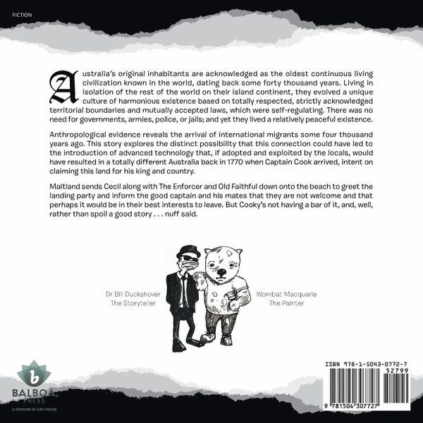 Australia's original inhabitants are acknowledged as the oldest continuous living civilization known in the world, dating back some forty thousand years. Living in isolation of the rest of the world on their island continent, they evolved a unique culture of harmonious existence based on totally respected, strictly acknowledged territorial boundaries and mutually accepted laws, which were self-regulating. There was no need for governments, armies, police, or jails; and yet they lived a relatively peaceful existence. Anthropological evidence reveals the arrival of international migrants some four thousand years ago. This story explores the distinct possibility that this connection could have led to the introduction of advanced technology that, if adopted and exploited by the locals, would have resulted in a totally different Australia back in 1770 when Captain Cook arrived, intent on claiming this land for his king and country. Maitland sends Cecil along with The Enforcer and Old Faithful down onto the beach to greet the landing party and inform the good captain and his mates that they are not welcome and that perhaps it would be in their best interests to leave. But Cooky's not having a bar of it, and, well, rather than spoil a good story . . . nuff said.