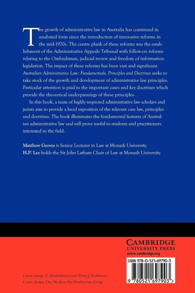 The growth of administrative law in Australia has continued in an unabated form since the introduction of innovative reforms in the mid-seventies. The centre plank of these reforms was the establishment of the Administrative Appeals Tribunal with follow-on reforms relating to the Ombudsman, judicial review and freedom of information legislation. The impact of these reforms has been vast and significant. This 2007 book seeks to take stock of the growth and development of administrative law principles. Particular attention is paid to the important cases and key doctrines which provide the theoretical underpinnings of these principles. In this book a team of highly respected administrative law scholars and jurists aim to provide a lucid exposition of the relevant case law, principles and doctrines. The book should illuminate the fundamental features of Australian administrative law and should prove useful to students and practitioners interested in this field.