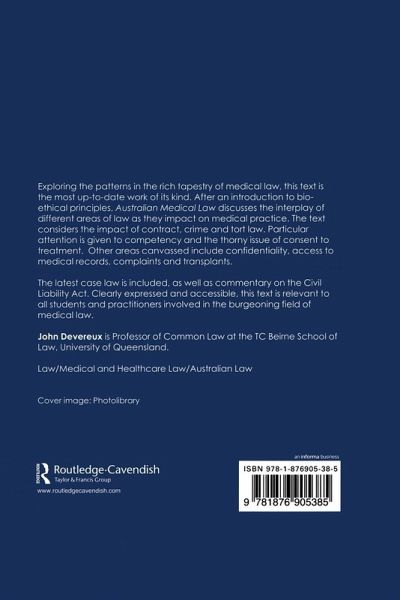 Exploring the patterns in the rich tapestry of medical law, this text is the most up-to-date work of its kind. After an introduction to bio-ethical principles, Australian Medical Law discusses the interplay of different areas of law as they impact on medical practice. The text considers the impact of contract, crime and tort law. Particular attention is given to competency and the thorny issue of consent to treatment. Other areas canvassed include confidentiality, access to medical records, complaints and transplants. The latest case law is included, as well as commentary on the Civil Liability Act. Clearly expressed and accessible, this text is relevant to all students and practitioners involved in the burgeoning field of medical law.