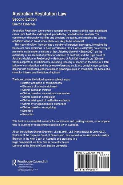 This book is the first casebook on restitution law to be published in Australia. It contains comprehensive extracts from the most significant Australian and English cases, together with some Canadian cases which indicate the possible direction which Australian law will take. The author has included substantial commentaries following the extracts, in order to further explain the decisions from overseas jurisdictions, to place those decisions in an Australian context. In the last decade, there has been a significant number of Australian decisions which deal with important concepts in restitution, and which supplement, qualify or refine the English law of restitution. The focus in this book on the Australian position makes it an invaluable resource for anyone who is studying or researching restitution law in Australia.