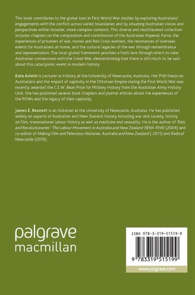 "Global history of the kind championed in this book is no longer a choice; it is a necessity, and, going by the high level of scholarship found in this book, a portent of excellent things to come." (Jay Winter, Australian Historical Studies, Vol. 49, 2018) "The collection is a worthy addition to the stock of historical writing about Australia and the Great War ... . the book shows that Australian war history has much more to offer - and illustrates possible future directions." (Martin Crotty, Honest History, honesthistory.net.au, September, 2017)