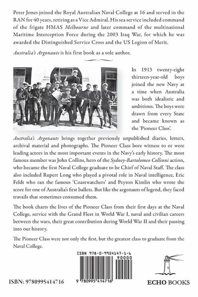 The story of the first cadet-midshipmen to join the Royal Australian Naval College is without parallel. In 1913 twenty-eight thirteen-year-old boys joined the new Navy at a time when Australia was both idealistic and ambitious. The boys were drawn from every State and became known as the ‘Pioneer Class'. Australia's Argonauts is the result of many years' research. It brings together previously unpublished diaries, letters, archival material and photographs. The Pioneer Class bore witness to or were leading actors in the most important events in the Navy’s early history. The most famous member was John Collins, hero of the Sydney-Bartolomeo Colleoni action, who became the first Naval College graduate to be Chief of Naval Staff. The class also included Rupert Long who played a pivotal role in Naval intelligence, Eric Feldt who ran the famous 'Coastwatchers' and Peyton Kimlin who wrote the score for one of Australia's first ballet. But like the argonauts of legend, they faced travails that sometimes consumed them. The book charts the lives of the Pioneer Class from their first days at the Naval College, service with the Grand Fleet in World War I, naval and civilian careers between the wars, their great contribution during World War II and their passing into our history. The Pioneer Class were not only the first, but the greatest class to graduate from the Naval College.