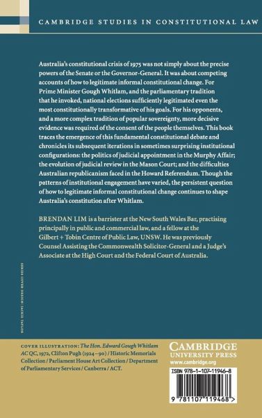Part 1. Introduction: I. New questions II. The plan Part 2. Informal Constitutional Change: I. The possibility of informal change II. The identification of informal change III. The legitimacy of informal change Part 3. The Whitlam Dismissal: I. The standard narrative II. The dismissal and the constitutional canon III. The higher law narrative IV. Conclusion Part 4. The Murphy Affair: I. Events of 1975-86 II. Murphy and the standard narrative III. Murphy and the higher law narrative IV. Conclusion Part 5. The Mason Court: I. Internal point of view II. Dixon's orthodoxy III. Popular sovereignty foreshadowed: 1962-86 IV. Popular sovereignty ascendant: 1987-95 V. Parliamentary supremacy returns: 1996- VI. Conclusion Part 6. The Howard Referendum: I. Constitutional law and identity II. Whitlam and Republicanism III. Republicanism reinvented IV. Clash of grammars V. Conclusion Part 7. Conclusion.