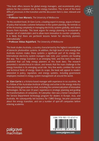 This book studies Australia, a country characterized by the highest concentration of domestic photovoltaic systems. In addition, the high level of solar energy that Australia receives makes these systems a significant part of its energy mix. International electricity system managers take note; your systems are heading this way. The energy transition is an emerging field, and few texts have been published that can help energy planners as this book does. The research presented is sociotechnical in nature, and reveals that the main challenge in the energy transition is its emerging social role. Very few works combine the social and technical fields of energy. Given its scope, the book will appeal to readers interested in policy, regulation, and energy systems, including government employees involved in energy system management all around the world.