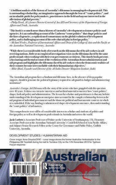 Whilst public support for the aid program in Australia is strong, Australians are wary of costs and want to ensure that aid is proven to be effective. Australia's Foreign Aid Program shows how aid fits into the story of Australia's place in the world and why this form of public expenditure persists, but also why its budget and administering institution have a perpetually tenuous existence.