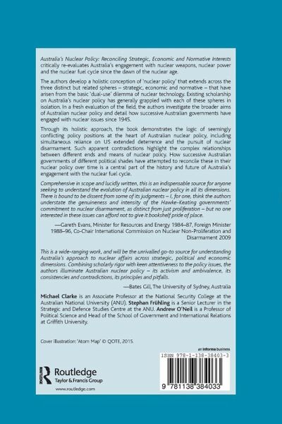 Australia's Nuclear Policy develops a holistic conception of 'nuclear policy' that extends across the three distinct but related spheres - strategic, economic and normative - that have arisen from the basic 'dual-use' dilemma of nuclear technology. Existing scholarship on Australia's nuclear policy has generally grappled with each of these spheres in isolation. In a fresh evaluation of the field, the authors investigate the broader aims of Australian nuclear policy and detail how successive Australian governments have engaged with nuclear issues since 1945.