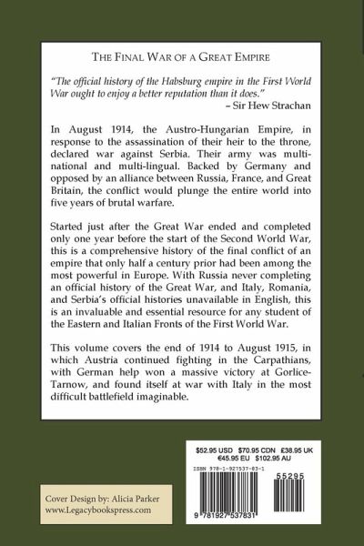 The Final War of a Great Empire "The official history of the Habsburg empire in the First World War ought to enjoy a better reputation than it does." - Sir Hew Strachan In August 1914, the Austro-Hungarian Empire, in response to the assassination of their heir to the throne, declared war against Serbia. Their army was multi-national and multi-lingual. Backed by Germany and opposed by an alliance between Russia, France, and Great Britain, the conflict would plunge the entire world into five years of brutal warfare. Started just after the Great War ended and completed only one year before the start of the Second World War, this is a comprehensive history of the final conflict of an empire that only half a century prior had been among the most powerful in Europe. With Russia never completing an official history of the Great War, and Italy, Romania, and Serbia's official histories unavailable in English, this is an invaluable and essential resource for any student of the Eastern and Italian Fronts of the First World War. This volume covers the end of 1914 to August 1915, in which Austria continued fighting in the Carpathians, with German help won a massive victory at Gorlice-Harnow, and found itself at war with Italy in the most difficult battlefield imaginable.