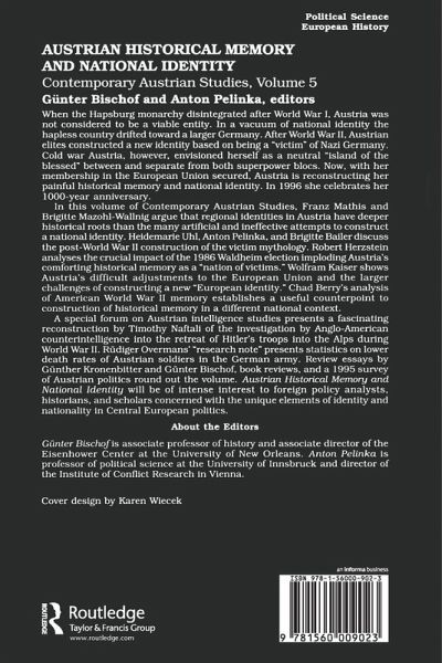 000 Years of Austria and Austrian Identity: Founding Myths; National Identity or Regional Identity: Austria Versus Tyrol/Salzburg; The Politics of Memory: Austria's Perception of the Second World War and the National Socialist Period; Taboos and Self-Deception: The Second Republic's Reconstruction of History; They Were All Victims: The Selective Treatment of the Consequences of National Socialism 1; The Present State of the Waldheim Affair: Second Thoughts and New Directions; The Silent Revolution: Austria's Accession to the European Union; Public