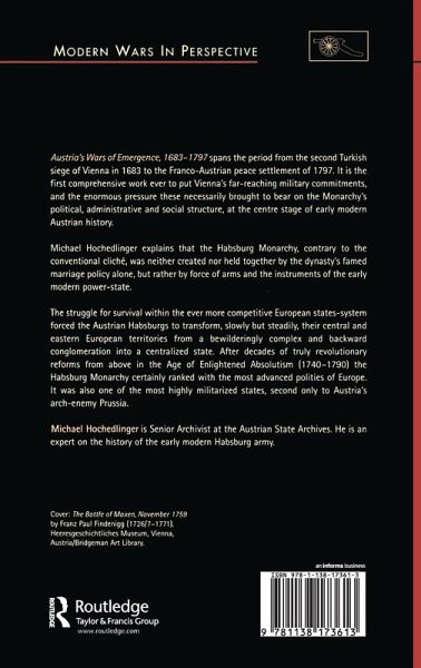 The Habsburg Monarchy has received much historiographical attention since 1945. Yet the military aspects of Austria's emergence as a European great power in the seventeenth and eighteenth centuries have remained obscure. This book shows that force of arms and the instruments of the early modern state were just as important as its marriage policy in creating and holding together the Habsburg Monarchy. Drawing on an impressive up-to-date bibliography as well as on original archival research, this survey is the first to put Vienna's military back at the centre stage of early modern Austrian history.