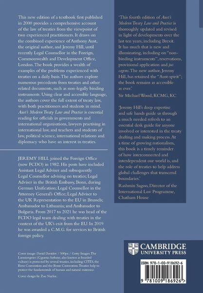 'This fourth edition of Aust's Modern Treaty Law and Practice is thoroughly updated and revised in light of developments over the last ten years, including Brexit. It has much that is new and illuminating, including on 'nonbinding instruments', reservations, provisional application and jus cogens. The new author, Jeremy Hill, has retained the 'Aust-spirit'; the book remains as accessible as ever.' Sir Michael Wood, KCMG, KC