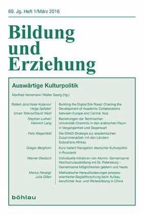 Dieses Heft von Bildung und Erziehung widmet sich den kontinuierlich steigenden Anforderungen im internationalen Hochschulaustausch. Erläutert werden Beispiele der Hochschulzusammenarbeit an Planungsüberlegungen für Afrika wie auch an Statusberichten über die Situation in der Russischen Föderation. Sie werden ergänzt durch Berichte über konkrete Aktivitäten von Hochschulen. Es wird über das EU Caren-Projekt informiert, mit dem Europa die Entwicklung eines leistungsfähigen und kostengünstigen, regionalen Forschungs- und Bildungsnetzwerks in Asien fördert, und das parallel entstehende Kooperationsprojekt vorgestellt, mit dem China seinen Bedarf an Berufsbildung zu decken versucht.