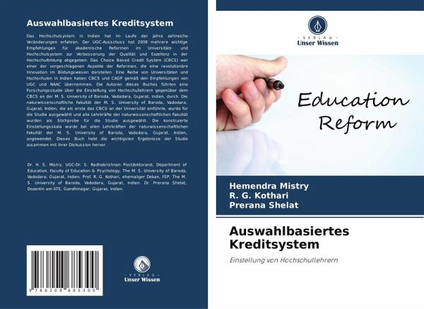 Das Hochschulsystem in Indien hat im Laufe der Jahre zahlreiche Veränderungen erfahren. Der UGC-Ausschuss hat 2008 mehrere wichtige Empfehlungen für akademische Reformen im Universitäts- und Hochschulsystem zur Verbesserung der Qualität und Exzellenz in der Hochschulbildung abgegeben. Das Choice Based Credit System (CBCS) war einer der vorgeschlagenen Aspekte der Reformen, die eine revolutionäre Innovation im Bildungswesen darstellen. Eine Reihe von Universitäten und Hochschulen in Indien haben CBCS und CAGP gemäß den Empfehlungen von UGC und NAAC übernommen. Die Autoren dieses Buches führten eine Forschungsstudie über die Einstellung von Hochschullehrern gegenüber dem CBCS an der M. S. University of Baroda, Vadodara, Gujarat, Indien, durch. Die naturwissenschaftliche Fakultät der M. S. University of Baroda, Vadodara, Gujarat, Indien, die als erste das CBCS an der Universität einführte, wurde für die Studie ausgewählt und alle Lehrkräfte der naturwissenschaftlichen Fakultät wurden als Stichprobe für die Studie ausgewählt. Die konstruierte Einstellungsskala wurde bei allen Lehrkräften der naturwissenschaftlichen Fakultät der M. S. University of Baroda, Vadodara, Gujarat, Indien, angewendet. Dieses Buch hebt die wichtigsten Ergebnisse der Studie zusammen mit ihrer Diskussion hervor.