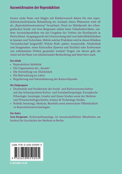 Immer mehr Paare und Singles mit Kinderwunsch fahren für einereproduktionsmedizinische Behandlung ins Ausland; dieses Phänomen wird oft als "Reproduktionstourismus" bezeichnet. Doch im Mittelpunkt der ethnografischen Studie von Sven Bergmann stehen keine Urlaubsaktivitäten, sondernAusweichpraktiken wie das Umgehen des Verbots der Eizellspende in Deutschland. Ausgangspunkt der Untersuchung sind zwei Infertilitätskliniken in Spanien und Tschechien. Mittels welcher Praktiken wird in diesen Kliniken Verwandtschaft hergestellt? Welche Rolle spielen Anonymität, Ähnlichkeit und Imagination, wenn Keimzellen (Sperma und Eizellen) oder Embryonen von unbekannten Dritten gespendet werden? Fragen wie diesen geht der Autor auf der Basis von teilnehmender Beobachtung und Interviews nach.