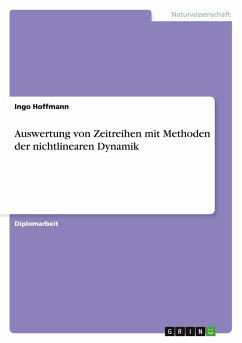 Diplomarbeit aus dem Jahr 1993 im Fachbereich Physik - Theoretische Physik, Note: 1,7, Bergische Universität Wuppertal (Theoretische Physik), Veranstaltung: Nichtlineare Dynamik, Sprache: Deutsch, Abstract: In der vorliegenden Arbeit werden anhand von Zeitreihen mit bekannter unterliegender Dynamik die Algorithmen zur numerischen Bestimmung von invarianten dynamischen Größen abgeleitet, implementiert und insbesondere an Messdaten unbekannter Dynamik angewendet. Als bekannte nichtlineare Dynamiken werden erläutert und ausgewertet: das Räuber-Beute-Modell, das Lorenzmodell, die quadratische Ikeda-Abbildung und die kubische Henon-Abbildung. Die analysierten Messdaten stammen von einem Nuclear-Magnetic-Resonance-Laserexperiment. Alle untersuchten nichtlinearen Systeme weisen ein deterministisch chaotisches Verhalten auf. Dabei zeigt sich, dass der durch die Bewegungsgleichungen beschriebene Fluß im Phasenraum auf einen z.T. fraktalen Unterraum - den Attraktor - beschränkt ist. Neben Verfahren zur Rekonstruktion des Phasenraums und des Attaktors aus den Daten, wird eine Methode zur lokal-linearen Rauschunterdrückung für die Präparation von Messdaten im Detail abgeleitet, erläutert und angewendet. Der Schwerpunkt der Arbeit liegt auf der numerischen Bestimmung invarianter dynamischer Größen aus den Daten. Diese Größen charakterisieren die unterliegende nichtlineare Dynamik auf einer Makroskala und erlauben Vergleiche verschiedener Systeme. Die hier betrachteten Invarianten sind: der Lyapunov-Exponent, die verallgemeinerten Renyi-Entropien und die verallgemeinerten (fraktalen) Dimensionen des Attraktors. Die erforderlichen Algorithmen zur Bestimmung der Invarianten werden im Detail erläutert und ihre Wirkungsweise anhand der Ergebnisse kritisch gewürdigt. Die vorliegende Arbeit stellt im Detail den Arbeitsprozess von den (Mess-)Daten zu den invarianten dynamischen Größen dar.