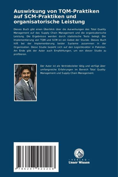 Dieses Buch gibt einen Überblick über die Auswirkungen des Total Quality Management auf das Supply Chain Management und die organisatorische Leistung. Die Ergebnisse werden durch statistische Tests belegt. Die Implementierung von TQM und SCM ist ein Gebot der Stunde. Dieses Buch hilft bei der Implementierung beider Systeme zusammen in der Organisation. Diese Studie bezieht sich auf den Logistiksektor in Pakistan. Am Ende gibt der Autor auch Empfehlungen, um von dieser Studie zu profitieren.