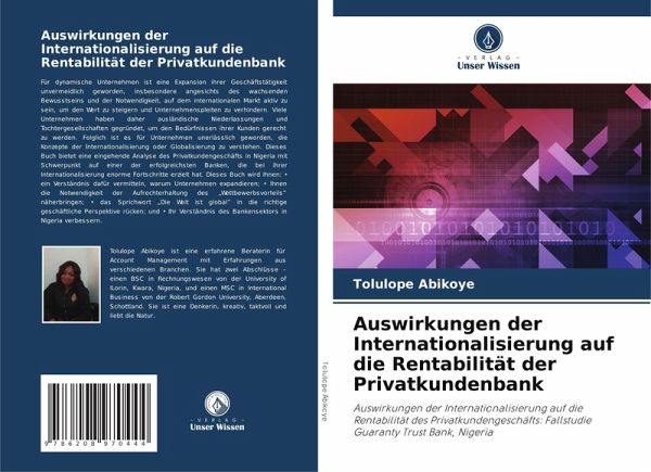 Für dynamische Unternehmen ist eine Expansion ihrer Geschäftstätigkeit unvermeidlich geworden, insbesondere angesichts des wachsenden Bewusstseins und der Notwendigkeit, auf dem internationalen Markt aktiv zu sein, um den Wert zu steigern und Unternehmenspleiten zu verhindern. Viele Unternehmen haben daher ausländische Niederlassungen und Tochtergesellschaften gegründet, um den Bedürfnissen ihrer Kunden gerecht zu werden. Folglich ist es für Unternehmen unerlässlich geworden, die Konzepte der Internationalisierung oder Globalisierung zu verstehen. Dieses Buch bietet eine eingehende Analyse des Privatkundengeschäfts in Nigeria mit Schwerpunkt auf einer der erfolgreichsten Banken, die bei ihrer Internationalisierung enorme Fortschritte erzielt hat. Dieses Buch wird Ihnen: - ein Verständnis dafür vermitteln, warum Unternehmen expandieren; - Ihnen die Notwendigkeit der Aufrechterhaltung des "Wettbewerbsvorteils" näherbringen; - das Sprichwort "Die Welt ist global" in die richtige geschäftliche Perspektive rücken; und - Ihr Verständnis des Bankensektors in Nigeria verbessern.