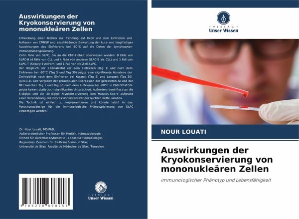 Entwicklung einer Technik zur Trennung auf Ficoll und zum Einfrieren und Auftauen von CMNSP und anschließende Bewertung der kurz- und langfristigen Auswirkungen des Einfrierens bei -80°C auf die Daten der Lymphozyten-Immunphänotypisierung.Zehn Fälle von SLPC, die an die CMF-Einheit überwiesen wurden: 8 Fälle von SLPC-B (4 Fälle von CLL und 4 Fälle von anderen SLPC-B als CLL) und 1 Fall von SLPC-T (Sézary-Syndrom) und 1 Fall von NK-Zell-SLPC.Der Vergleich der Zellviabilität vor dem Einfrieren (Tag 1) und nach dem Einfrieren bei -80°C (Tag 5 und Tag 30) zeigte eine signifikante Abnahme der Zellviabilität nach dem Einfrieren bei Kurzzeit (Tag 5) und Langzeit (Tag 30) (p<10-3). Der Vergleich der prozentualen Expression der getesteten Ak und der MFI zwischen Tag 5 und Tag 30 nach dem Einfrieren bei -80°C in DMSO/SVF5% zeigte keinen statistisch signifikanten Unterschied. Außerdem beeinflussten die 5-tägige und die 30-tägige Kryokonservierung den Matutes-Score aufgrund einer Veränderungder Expressionsintensität der leichten Kette Lambda.Die Technik ist einfach zu implementieren und könnte leicht in das Forschungsdesign für die immunologische Phänotypisierung von SLPC einbezogen werden.