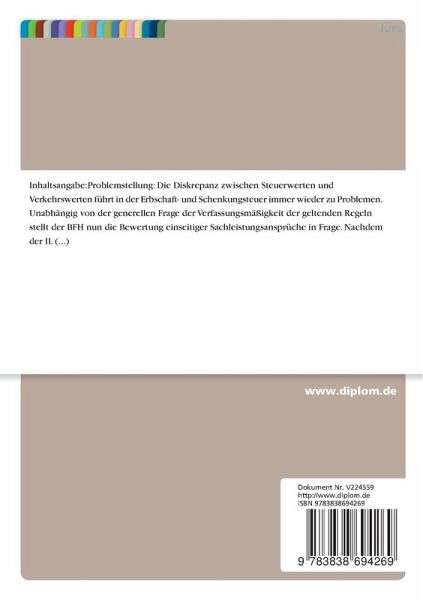 Es soll im Folgenden untersucht werden, ob die Äußerungen des II. Senats einer genaueren Betrachtung standhalten können und inwieweit sie auf die angesprochenen Grundstücksvermächtnisse beschränkt sind. Es erscheint zumindest möglich, dass die Ausführungen des BFH in mancher Hinsicht Auswirkungen haben, die bei dem Versuch eine Lösung für das Problem der Bewertung von einseitigen Sachleistungsansprüchen und -verpflichtungen zu finden, nicht hinreichend berücksichtigt worden sind.