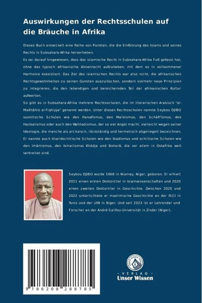 Dieses Buch entwickelt eine Reihe von Punkten, die die Einführung des Islams und seines Rechts in Subsahara-Afrika hervorheben.Es sei darauf hingewiesen, dass das islamische Recht in Subsahara-Afrika Fuß gefasst hat, ohne das typisch afrikanische Ahnenrecht aufzuheben, mit dem es in vollkommener Harmonie koexistiert. Das Ziel des islamischen Rechts war also nicht, die afrikanischen Rechtsgewohnheiten zu seinen Gunsten auszulöschen, sondern vielmehr neue Prinzipien zu integrieren, die den lebendigen und bereichernden Teil der afrikanischen Kultur aufwerten. So gibt es in Subsahara-Afrika mehrere Rechtsschulen, die im literarischen Arabisch "al-Madhâhib al-Fiqhiyya" genannt werden. Unter diesen Rechtsschulen nannte Seybou DJIBO sunnitische Schulen wie den Hanafismus, den Malikismus, den Schâfi'îsmus, den Hanbalismus oder auch den Wahhabismus, der so viel Angst macht, vielleicht wegen seiner Ideologie, die manche als archaisch, rückständig und hermetisch abgeriegelt bezeichnen. Er nannte auch kharidschitische Schulen wie den Ibadismus und schiitische Schulen wie den Imâmismus, den Ismailismus Khôdja und Bohorâ, die vor allem in Ostafrika weit verbreitet sind.